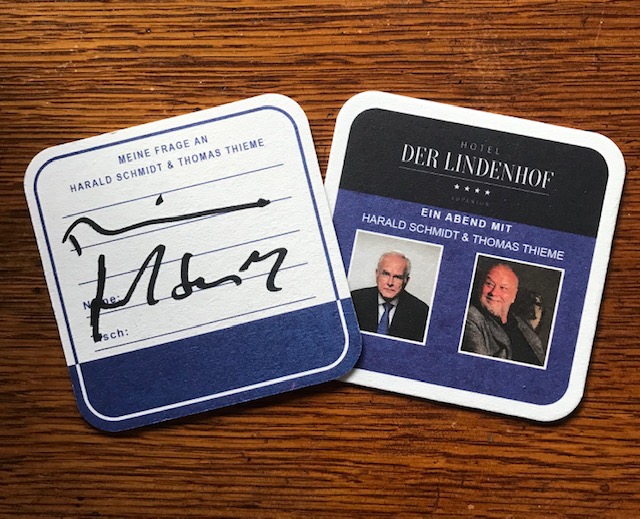 Sonntag. Wenn Harald Schmidt und Thomas Thieme im Gothaer Lindenhof zusammenkommen, dann ergibt die Prise Süffisanz & Zynismus an Hyperschlagfertigkeit und Roundabout-Durchblick einen coolen Abend.