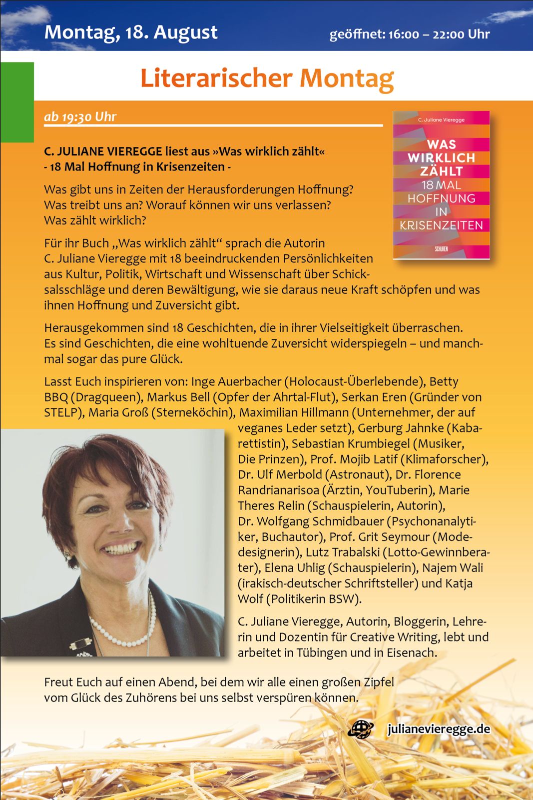 Heute Abend auf dem Strohländle Open Air Festival Lesung aus „Was wirklich zählt – 18 Mal Hoffnung in Krisenzeiten“ – ich freue mich schon auf Dich und euch!