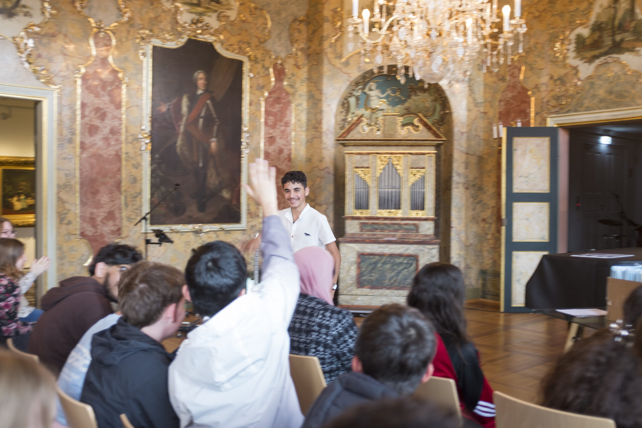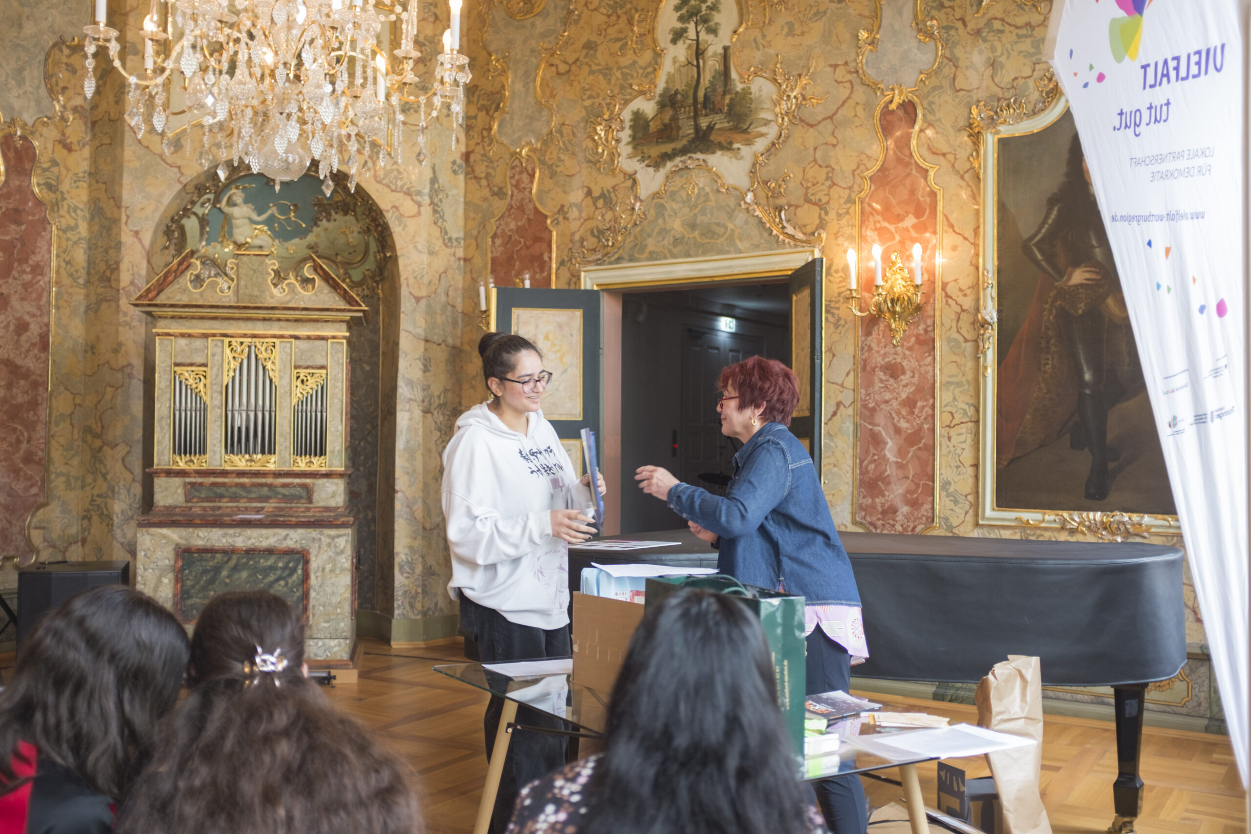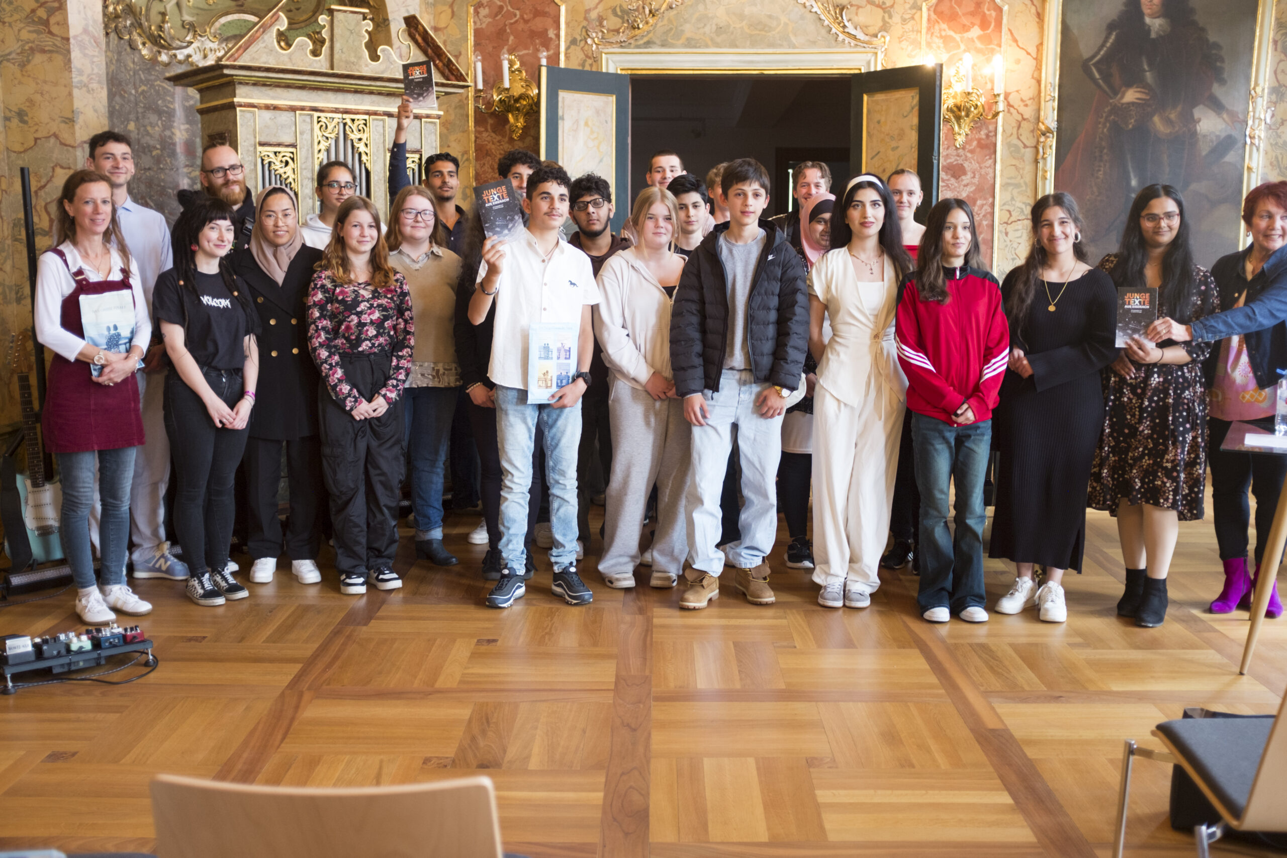 38 stolze JungautorInnen im Rokkokosaal des Eisenacher Schlosses. Fotos von Uwe Jung-Kempe
