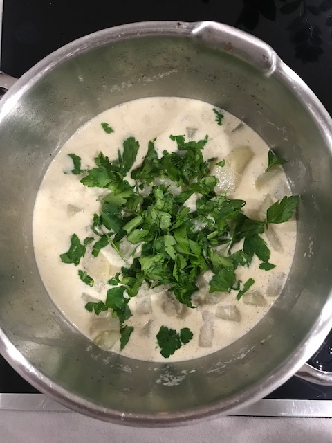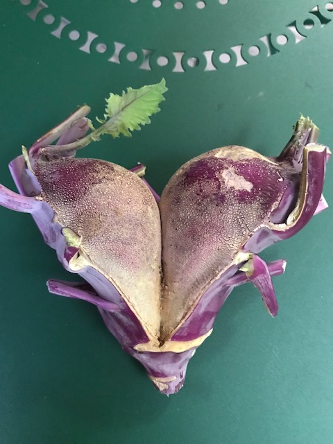 Die erste eigene Ernte eingefahren: Kohlrabi, Frühlingszwiebeln und Petersilie aus dem Hochbeet. Ein Kohlrabi ist uns aber zu schade zum Essen: